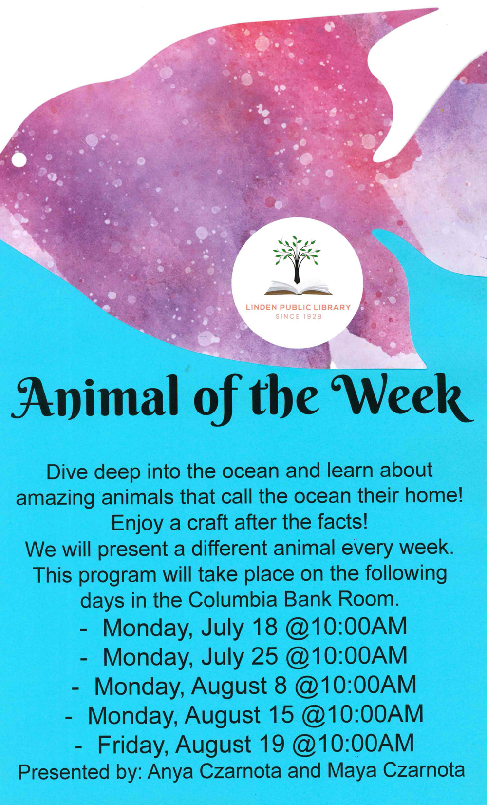 - What: We will present a different animal every week. Enjoy a craft after the facts! Presented by: Anya Czarnota and Maya Czarnota.